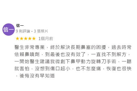 - 下鼻甲成形手術(Turbinectomy / Turbinoplasty)經由局部麻醉下實施下鼻甲成形手術,來縮小鼻甲體積,進而達到解決鼻塞的效果。