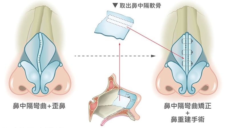 - 鼻中膈矯正:拉直彎曲的軟骨,暢通氣流