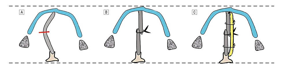 ▲鼻中隔軟骨切痕縫合術示意圖。