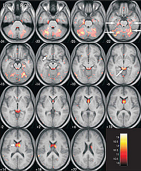 ▲ 顯示空鼻症患者腦部核磁共振影像,明顯可見邊緣系統異常激化現象。